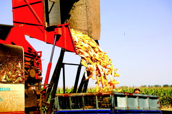 9月25日天刚刚微亮,太白湖新区石桥镇聂庄村的种粮大户张辉便来到了泗河堤坝的玉米地里,指挥玉米收割机热火朝天地干起来。张辉一边指挥着收割机,一边拾起遗漏在地里的玉米。“我使用的机械收割可以直接使玉米脱粒,之后再晾晒两三天就可以出售了。”张辉说。