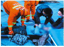 ◤▲消防员在救援现场。