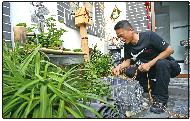 刘新勇在小院里种了大量绿植,让客人四季都有花看。