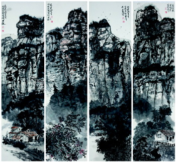 山水四条屏