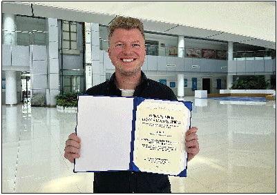 ◥去年,王赛博被授予“山东省人民友好使者”荣誉称号。 记者 范佳 摄