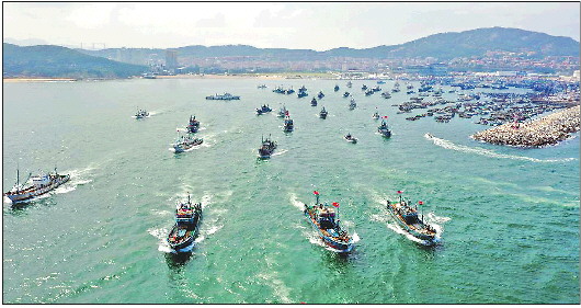威海中心渔港千船竞发,渔民赴远洋“耕海”。 记者 王震 摄