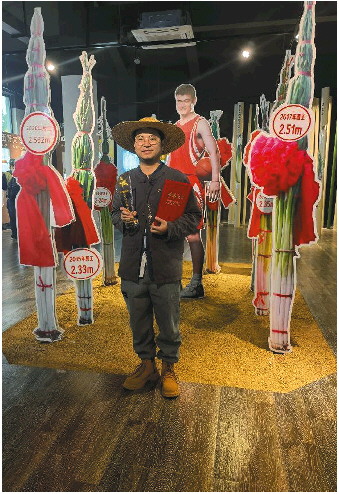 到了章丘后,赵朝鹏第一时间就钻到了葱地向农户请教,还到大葱博物馆系统地了解了章丘大葱的历史。他琢磨着如何让直播更有趣、更具看点,循着“你没葱高”的热门话题,他也和葱比起了身高。
