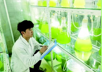 本报德州11月10日讯(记者 孙文丽) 11月8日,德州地福来生物科技有限公司科研人员正在试验室观察藻类活性细胞的生长状态。日前,投资1.02亿元的新型绿色“地福来”藻类活性细胞生物肥项目在位于乐陵的德州国家农业科技园区孵化中心试产运营。
