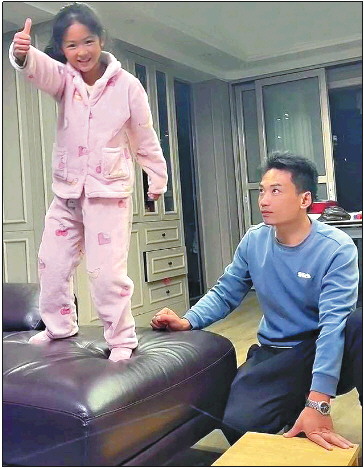 早上8点左右,王强回来,接替袁玲照看孩子,并陪伴孩子进行康复训练。“我们也是一边咨询专业人士,一边学习科学的训练方法。刚开始时,每天断断续续,需要练习6个小时。”袁玲说,最初他们让女儿在床上做被动训练,弓腿、伸腿、抬腿,这些正常人再简单不过的动作,安琪需要重复练习上千遍。