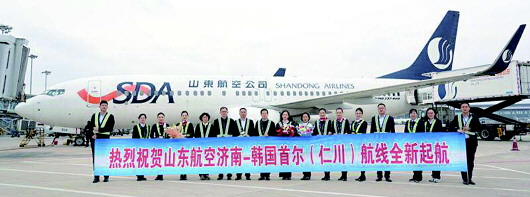 11月14日上午,SC4095航班由济南遥墙机场起飞赶赴韩国首尔,当地时间11点06分,飞机在首尔仁川机场平稳落地,标志着济南——首尔航线全新起航。