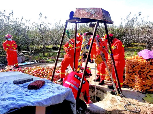 近日,龙口市新嘉街道一名女子在果园务农时不慎坠落储存生姜的地窖井中,致使腿部摔伤,情况十分紧急。龙口市消防救援大队指挥中心在接到报警后,迅速出动赶赴现场实施救援。经消防救援人员勘查发现,地窖井口直径约1米,深度约6米,氧气充足,坠井人员腿部摔伤。了解现场情况后,消防救援人员在做好双保险的情况下下井展开救援。到达井底后,救援人员将被困伤者固定在担架上,与井上救援人员合力成功将其救出。 记者 李雯娅 通讯员 孙成飞 摄影报道