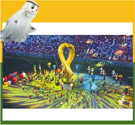 11月20日,2022年卡塔尔世界杯会徽出现在开幕式现场。当日,2022年世界杯开幕式在海湾体育场举行。 本报特派记者 季禹 摄