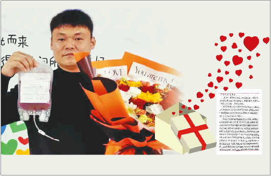 11月21日上午,山东菏泽定陶90后小伙崔开庚,在济南完成了造血干细胞捐献。这袋珍贵的造血干细胞将被送往数千里之外的广州,救助一名白血病患者。为了此次捐献,崔开庚和爱人推迟了备孕计划,他从9月份就开始坚持跑步健身,两个多月减重10斤。小图为受捐者写来的感谢信。 记者 李潇 报道