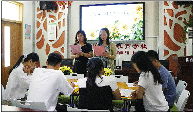 “我们特殊教育学校老师要想实现弯道超车、实现跨越式发展的话,不能一步一步跟着别人走,毕竟我们的对象不一样,教育教学方式方法有差别,我们要靠大量的阅读专业理论书籍来丰富教育视野,还要学以致用,在用的过程中会有感悟和思索。”卢圣国说,每天中午7位教师抽出一个小时,一块儿交流学习,主要内容是把握教育热点、社会的关注点,引发话题展开讨论,进行专业知识积累、文化积累,让个人成长。