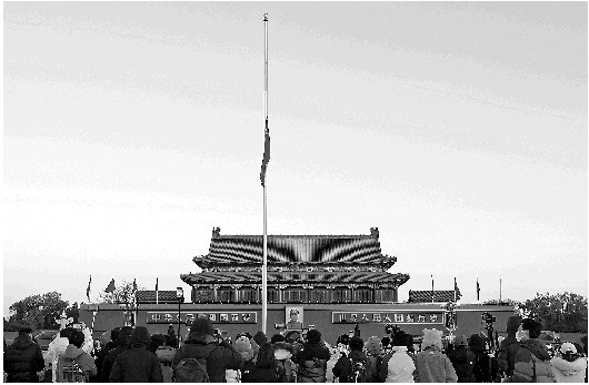 天安门下半旗悼念江泽民同志逝世