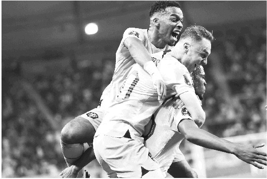 ▲荷兰队球员在进球后庆祝。     新华社发