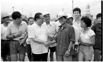 1987年8月5日,时任上海市市长的江泽民同志冒着酷暑,前来看望铁路上海站的建设者。 据解放日报