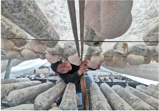 上层草莓,下层猴头菇,王丽慧引进的立体栽培新模式在提升空间利用率的同时又增加了经济收益。