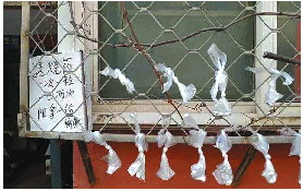 赵永兰将药品剪好,并用袋子封装,系在了窗前。