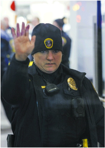 ◤12月23日,一名警官在发生枪击事件的百货公司内执勤。新华/美联