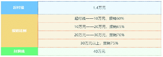 参保人一个医疗年度内发生的住院、门诊慢特病医疗费用,经基本医保报销后,个人累计负担超过1.4万元的合规医疗费用纳入居民大病保险。报销比例见图3。