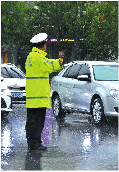 雨中执勤护安全。