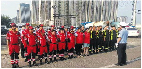 联合民间救援队开展文明劝导活动。