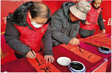 书画爱好者现场创作,向市民免费赠送春联和福字。