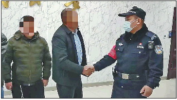 李某的家人和村党支部书记连夜赶到济南,临走时向民警致谢。警方供图