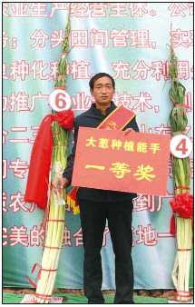 大葱种植户苗发勇种植的大葱高达2.44米,一举夺魁。