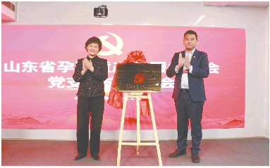 省工商联党组成员、秘书长,省工商联商协会党委书记于玲与山东省孕婴童产业服务协会党支部书记张镇共同为山东省孕婴童产业服务协会党支部揭牌。 燕方峣 摄