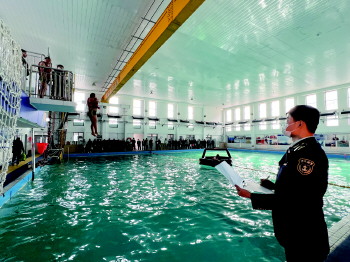 考试过程中,潍坊海事局工作人员在考前提前到场测试跳水场馆的水温,检查设备是否锈蚀保证考生安全,对评估项目实施十人一组,学校专人负责安排考生有序进行考核项目,监考人员严格按照评估规范进行评估考核。由于时间紧、任务重,监考人员在监考中多次牺牲午休时间,确保考试计划能够严格执行,船员能够如期结束考试换证并节后返岗。