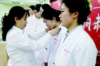 诠释了庄严坚定的承诺 “形式服务内容,仪式提升荣誉”。在新员工入职培训结业仪式上,医院还举行了向新入职护理人员授帽和向新入职医生授听诊器及入职宣誓仪式,党委委员、纪委书记李泽锋,党委委员、副院长邵燕亲手将一副副崭新的听诊器给新入院医生一一挂在胸前,神圣、隆重而又温馨,寄托着院领导对新人的嘱托和期望,同时也传承着医务人员的精神和信念。