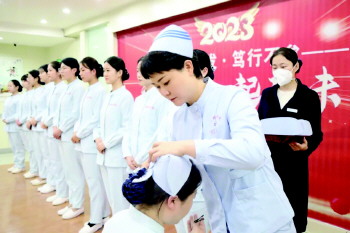 一袭飘然的白衣折射一颗纯洁的心灵,一顶别致的燕尾帽闪现救死扶伤的重任。在催人奋进的《中国护士之歌》的歌声中,党委委员楚媛将一顶顶神圣的燕尾帽授予新入职护士,赋予了新护士守护生命的神圣职责和使命,使她们明白了身上的责任,懂得了奉献,接受了一次心灵的洗礼,感受到了南丁格尔精神的真谛,坚定了为护理事业献身的决心和信念。