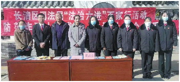 本报2月16日讯(通讯员 邢开闻) 近日,长清区司法局双泉司法所联合区法院立案庭、马山法庭、镇综治办、派出所到段店大集开展“法治六进”百家行活动。