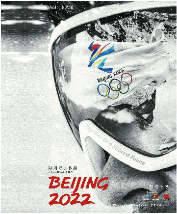 首张海报则突出了奥运精神中人与自然的融合。海报再现了冬奥健儿雪山之巅的赛场英姿,将北京冬奥会会旗、陡峭的雪道与运动中的身影,都反射在运动员的雪镜中,展现了冰雪运动的速度与激情,也展现了超越自我的冬奥精神。