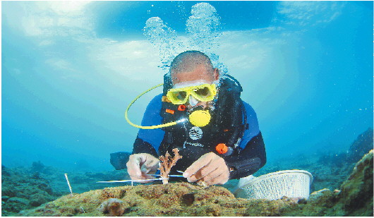 “今天插下‘一棵树’,未来长成一片珊瑚海。”近年来,在我国科研人员持续努力下,三亚市蜈支洲岛海域已种植珊瑚超3万株,修复海域面积约5万平方米。黄晖带领团队已在南海海床种植了20多万平方米珊瑚。陈宏团队在一些海域已培育23万株珊瑚……