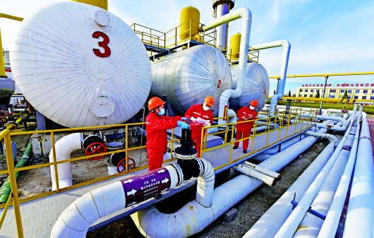 近日,胜利油田河口采油厂油气集输管理中心首站员工按时对油气水分离器管线流程进行隐患排查,确保管线无渗漏、安全清洁、高效生产。一直以来,河口采油厂以绿色企业行动计划为统领,对采油、油气集输,以及作业、钻井等系统全方位推进固体废物源头减量化、利用资源化和处置无害化,高标准建设“无废采油厂”,走出了一条绿色发展的“无废”之路。 本报记者 顾松 通讯员 吴木水 甘冰 摄影报道