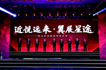 与会嘉宾共同为青岛机场集团公司“近悦远来·翼展星途”党建总品牌揭牌。揭牌仪式后,青岛机场党委书记、董事长焦明伟带领集团基层特色党建品牌代表和21位新党员重温了入党誓词。