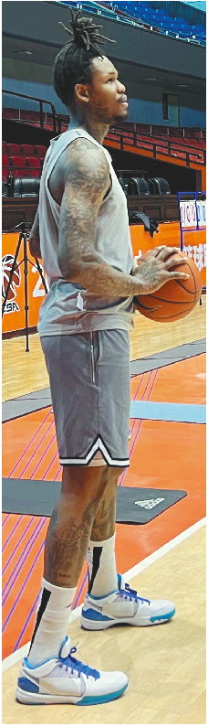 ◤扎着冲天辫的麦克莱默,已经完全融入山东男篮。 记者 冯子涵 摄