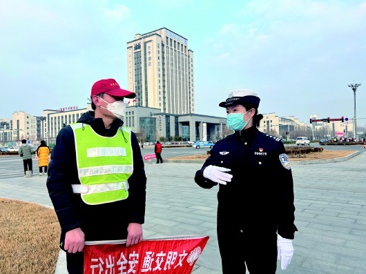 “同志您好,骑电动车要戴头盔知道吗,是对自己的安全负责。”23日上午,在菏泽城区点将台路,牡丹区牡丹区交警大队长江西路中队辅警程业正劝导市民骑电动车不戴头盔、逆行等违章、违法行为。“我们每天提前半个小时到岗到位,对辖区内学校周边道路安全环境进行确保畅通。”程业说。