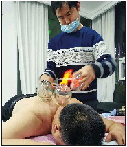 黄永朋在给顾客拔火罐。