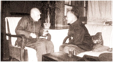 王泗原先生(右)在叶圣陶先生家中晤谈语文工作。