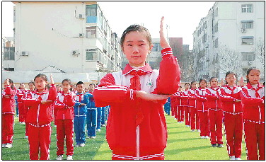 学子跳文明礼仪操 将儒学融入日常生活
