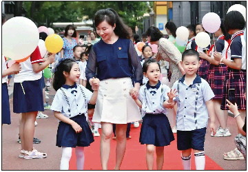 据了解,早在幼小衔接课程教研前期,育贤一幼就对家长进行幼小衔接问卷调查,有针对性地开展幼小衔接专题家长讲座,并在幼儿园公众号、班级群发布幼小衔接动态及活动。从培养有准备的儿童出发,幼儿园以线上线下多种方式开展幼儿参观小学、小学生走进幼儿园等活动,让孩子们近距离感受小学生丰富的课程和活动,产生良好的入学期待。育贤一幼副园长焦德艳对幼儿园大班的毕业典礼印象特别深刻:“毕业那天,育贤小学的哥哥姐姐们列起欢迎纵队排列在红毯两侧。园长牵着孩子的小手,走向通往小学的成长之门,亲自将孩子们送到了郭校长和老师们的手中。交的是育人‘接力棒’,搭的是幼小衔接的桥梁。”