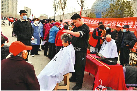 志愿者为老人免费理发。