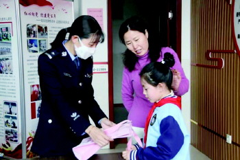 两位警官将学习礼品送到了王怡佳同学手中,并对她拾金不昧的行为提出表扬,希望她能继续发扬优良传统,做个品学兼优的好孩子。