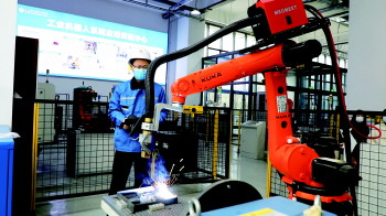 “对工业机器人非常感兴趣,通过两年的专业学习,想通过这次比赛来测验自己理论水平和实际操作能力。”山东理工职业学院工业机器人专业大二学生曹育铭说,,没课的时间他就泡在实验室内,不断调整代码的参数,“不同的参数、角度、移动速度等都会影响焊缝的质量,所以要不断尝试与调整。”