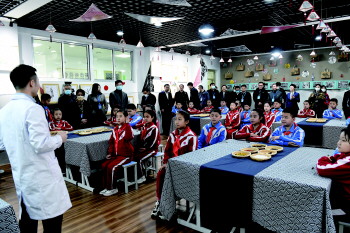 全国第6个近视防控宣传月集中宣讲暨现场观摩活动走进济宁市东门大街小学现场观摩中医药文化进校园开展情况。