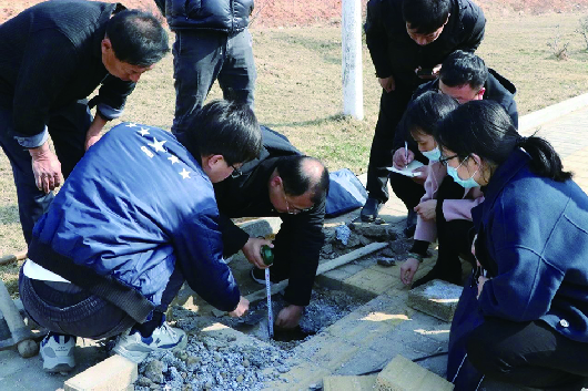 ◤图为文登区委第二巡察组、文登区纪委监委派驻第三纪检监察组会同文登区审计局工作人员,到项目现场实地查勘国有企业工程施工情况。