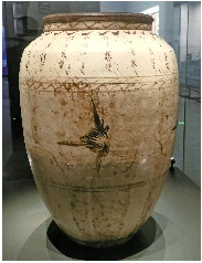 上面说了酒的营销和控制饮酒的广告,下面再说说其他产品的营销广告。邯郸博物馆藏有一件清康熙八年烧制的白地褐彩瓷坛(如图④)。坛上写:“康熙八年,造下此坛,出自山西,郡名陵川,附城镇上,西南子山。放酒酒好,成(盛)醋醋酸,盛水不漏,淹(腌)菜菜咸,买上一个,居家喜欢。诸般都放,放密(蜜)更甜。人人爱买,不论价钱,使了想使,胜活十年,请君先看,许多诗言。我要讨价,细细五钱,可好可好,直(值)钱直(值)钱,休走休走,快还快还,真正白货,去而何南(难)。”前几句交代了此坛的制作地点在山西陵川县附城镇,这几个地点现在还都有。山西晋东南地区怎么也有磁州窑?前面已经说过,磁州窑是民窑,其装饰技法和制作风格为百姓喜闻乐见,全国许多窑口都仿烧磁州窑系列产品,与磁州一山(太行山)之隔的晋东南窑厂当然也不例外。再后面就是“神夸”该坛的功能了,夸得这口坛如同“哆啦A梦”的口袋,放上啥都能心想事成。时间、地点、“神功用”都交代清楚了,后面的词就是让你消费了,“我要讨价,细细五钱。”意思是这个器物只卖五文钱。“可好可好,直(值)钱直(值)钱。休走休走,快还快还,真正白货,去而何南(难)。”意即这样的价钱买这个货物,简直就是白给您的了。走是太容易了,但是过了这个村,就再也没有这个店了。这一番神操作下来,你不买都心不甘。这些词不仅对瓷器起到了装饰的作用,而且读起来朗朗上口,通俗易懂,起到了宣传营销作用,同时还把市井之间买家与卖家讨价还价的场面描绘得淋漓尽致,字里行间透露出淳朴的民窑气息和民俗文化特色。