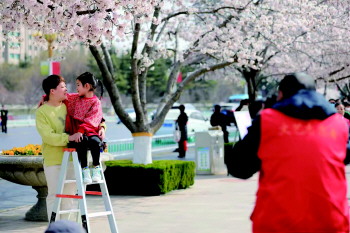 本报3月27日讯(记者 蔚晓贤 通讯员 唐甜)阳春三月,潍坊街头春色撩人,尤其是人民广场的樱花竞相绽放,引来游人无数。可惜樱花虽美,花期短暂,为了留住这烂漫春色,3月25日,由潍坊市文联主办、潍坊市摄影家协会承办的“浪漫‘樱’像”活动在人民广场启动,26名志愿者为广大市民免费拍照留念,为大家留下独特的樱花记忆。