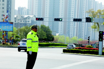 交警指挥交通。