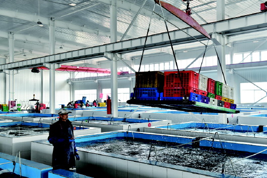 从净化池中打捞净化好的牡蛎